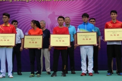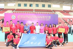 学生代表队在竞技比赛中,同学们相互鼓励团结合作,体现了更高、更快、更强的体育精神。最后学生代表队在说课、体操和田径比赛获得二等奖;在基础理论、足球、武术和羽毛球比赛获得三等奖。在15个小项目比赛中,获得一个一等奖;七个二等奖和七个三等奖,学生代表队获得团体总分三等奖和体育道德风尚奖。