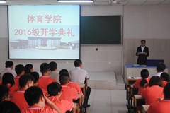 丹桂正飘香,筑梦当远航。9月12日,巴黎人赌场 2016级新生开学典礼在第二教学楼105室隆重召开。巴黎人赌场 党委书记杨杰,巴黎人赌场 院长杨磊,巴黎人赌场 副书记、副院长卢琦,副院长亓圣华,学办老师,2016级辅导员、班主任和助班及2016级全体新生参加了此次典礼。典礼由巴黎人赌场 学办主任李涛主持。 在庄严的国歌声中,开学典礼正式拉开序幕。首先,由巴黎人赌场 党委书记杨杰致辞,他代表巴黎人赌场 所有师生对2016级新生的到来表达最诚挚的祝贺和最热烈的欢迎,并向新生介绍了巴黎人赌场 的基本情况,希望新生尽快适应大学生活,勉励新生脚踏实地,珍惜时间,合理规划未来,做好职业规划,并祝愿新生们在大学四年能学有所成。接着,巴黎人赌场 2013级优秀在校学生代表及2016级新生代表分别在典礼上进行发言。老生代表回顾了自己在校三年的点点滴滴,结合自己的在校经历,鼓励新生努力学习,奋勇向前;新生代表则表示将始终保持昂扬向上的精神状态,身心投入大学新的学习生活中努力学习回报母校的培养。随后,由2016级新生班主任代表发言讲话,她希望新生珍惜大学时光,勇于质疑,敢于创新,做正能量的人与事,能够在体院书写精彩生活,成就人生梦想。最后,由巴黎人赌场 院长杨磊发言,他对2016级新同学提出了三点希望:一是转变角色、融入体院,二是学会选择、把握机会,三是学会感恩、勇于担当。并寄语全体新同学在学业新起点、新征程上扬帆起航,预祝同学们大学生活愉快成功。 至此,巴黎人赌场 2016级新生开学典礼圆满落幕。据悉,巴黎人赌场 2016级新生共220人,他们的到来必将为巴黎人赌场 增添新的活力!(编辑:曾辉)