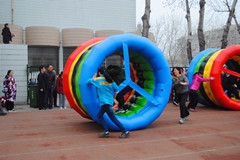 教职工分为两队,每队三人一组进行接力赛。然后紧张的比赛开始了,老师们一改往日的严谨,沉浸在比赛的欢呼喝彩声中,尽情享受着活动带来的乐趣与快乐。在“动感五环、旋转向前”比赛中,有的老师被五环绊倒,没等站稳又继续跑,接着又被绊倒,又匆忙起身跑,一路跌跌撞撞奔向终点;还有的老师由于跑动过快,偏离了方向,但仍毫无顾虑地跑着,逗得观众前仰后合。比赛结束后,巴黎人赌场