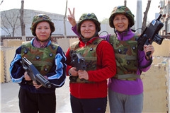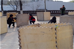 本次比赛采取了单循环比赛积分制,共分为三个小组,每个小组三个人。比赛正式开始前,全套的真人野战CS套装发到了大家的手中。鲜艳的迷彩绿,内置崭新的激光感测设备,真是让人爱不释手。伴随着一片片惊呼声,大家迅速换装。此时的老师们,摇身一变成为了摩拳擦掌的野战战士,个个女老师精神抖擞,整装待发。一声令下,激战开始。奔跑的身影,尽情的呐喊,仿真的射击……比赛现场瞬间成为了一片交织的绿色海洋,每个人都特别的投入,在“碉堡里”巧妙地躲避持有“枪支”的“敌人”。比赛过程中,同组队员间相互配合,相互掩护,默契十足,每个人都感受到了战场的激烈角逐。