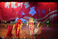 元旦晚会正式拉开帷幕,狮子在锣鼓音乐的配合下,向大家展示了中国优秀的传统民间艺术,狮子时而威武勇猛,时而嬉戏欢乐,演员们将其表演得惟妙惟肖、出神入化,亦展示出了青春校园的灵动与活跃,迅速点燃了台下观众的热情。随后,充满异国风情的肚皮舞表演《土耳其之韵》则用潮流的音乐、妩媚的舞姿展现出体院女生的另类精彩。一首青春、励志的歌曲《我相信》带领大家进入了音乐行空,天马飞扬的境界,一段段或空灵或高亢的音符让全场观众耳目一新。由邵宁教官指导的军体拳《魂》以其独特的视角生动地展现了军人生活的点点滴滴,更使得2012级新生追忆起军训期间的美好时光,拉近了晚会与同学们之间的距离,演员们精彩表演更是赢得了现场观众的阵阵掌声。紧接着的街舞表演《旋风起舞》则让大家在跃动、激情的的舞步中感受到了体院学子的蓬勃朝气和健康活力。