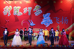杨鹏老师领演的健美操《舞动青春》充满青春气息,又不失诙谐幽默,将晚会推向了另一个高潮。武术表演《体院武魂》一队队小伙子身穿红色武术服,手持大刀冲进舞台,其虎虎生风的大刀表演,集体拳术的套路表演,节目之精彩、气势之雄伟、使得在场观众直呼“给力”。有人说“每个中国人心中都有一个武侠梦”而这次华丽的武术表演则以一种独特方式圆了在场所有人的“武侠梦”,更是把我体院学子的活力、青春、健美展现的淋漓尽致。最后,晚会在一曲深情款款的师生大合唱《相亲相爱》中圆满落下帷幕。