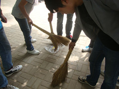 下午2点,50名志愿者在老师的带领下,以饱满的热情赴舜玉小区进行义务劳动,志愿者针对玉函小区垃圾多、街道脏乱的现象,明确分工,合力解决。一部分同学徒手捡大街上的垃圾,一部分同学整理街道上杂乱物品,其他的同学打扫街道。清理过程中,每一名同学都以一丝不苟的态度对待工作,虽然垃圾很脏,天气又很炎热,但同学们没有退缩,始终在埋头苦干。由于小区的工作量大,中午志愿者们只是匆匆的吃了几口饭,又立刻投身到工作中,直到下午将小区最后的垃圾打扫完。人多力量大,经过一整天的奋战,小区焕然一新