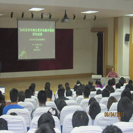 3:40讲座正式开始。首先,常教授为我们详细地介绍了被科研院所认定的istp、sci、ssoi、a&hci四种国际检索工具 。随即,常教授向我们讲授了撰写学术论文时,需要在文题、摘要、关键词、小结等方面多加考究;要了解国内外动态,站在学科的前沿,参考文献要新;要深信专家但不迷信专家。常教授严谨的实验设计、创新的实验成果吸引了广大师生。此次讲座达到了预期的效果,获得了圆满成功。