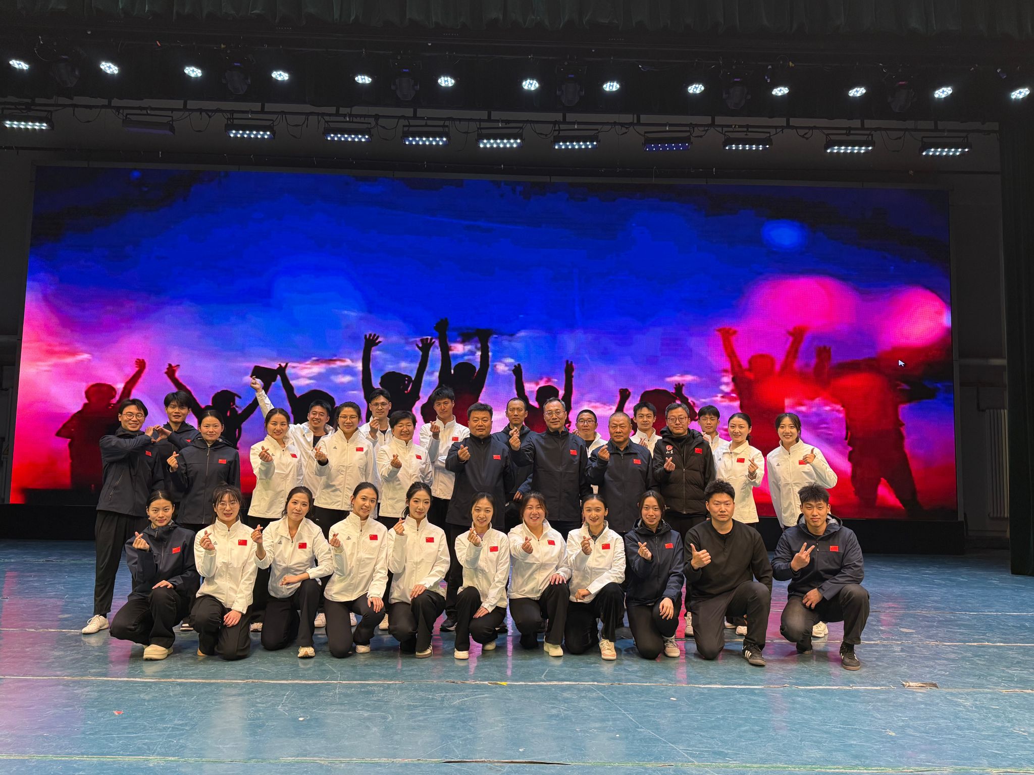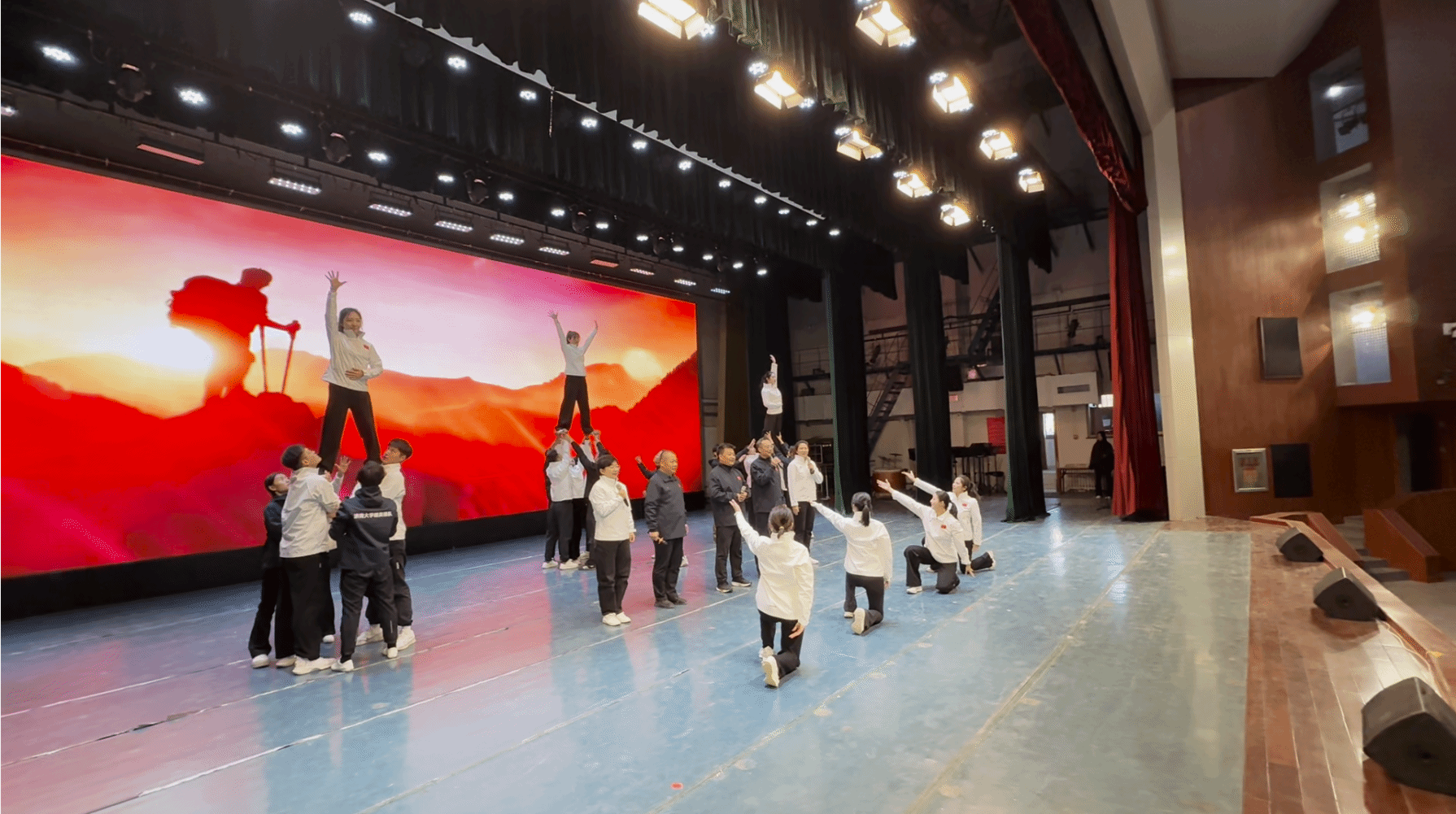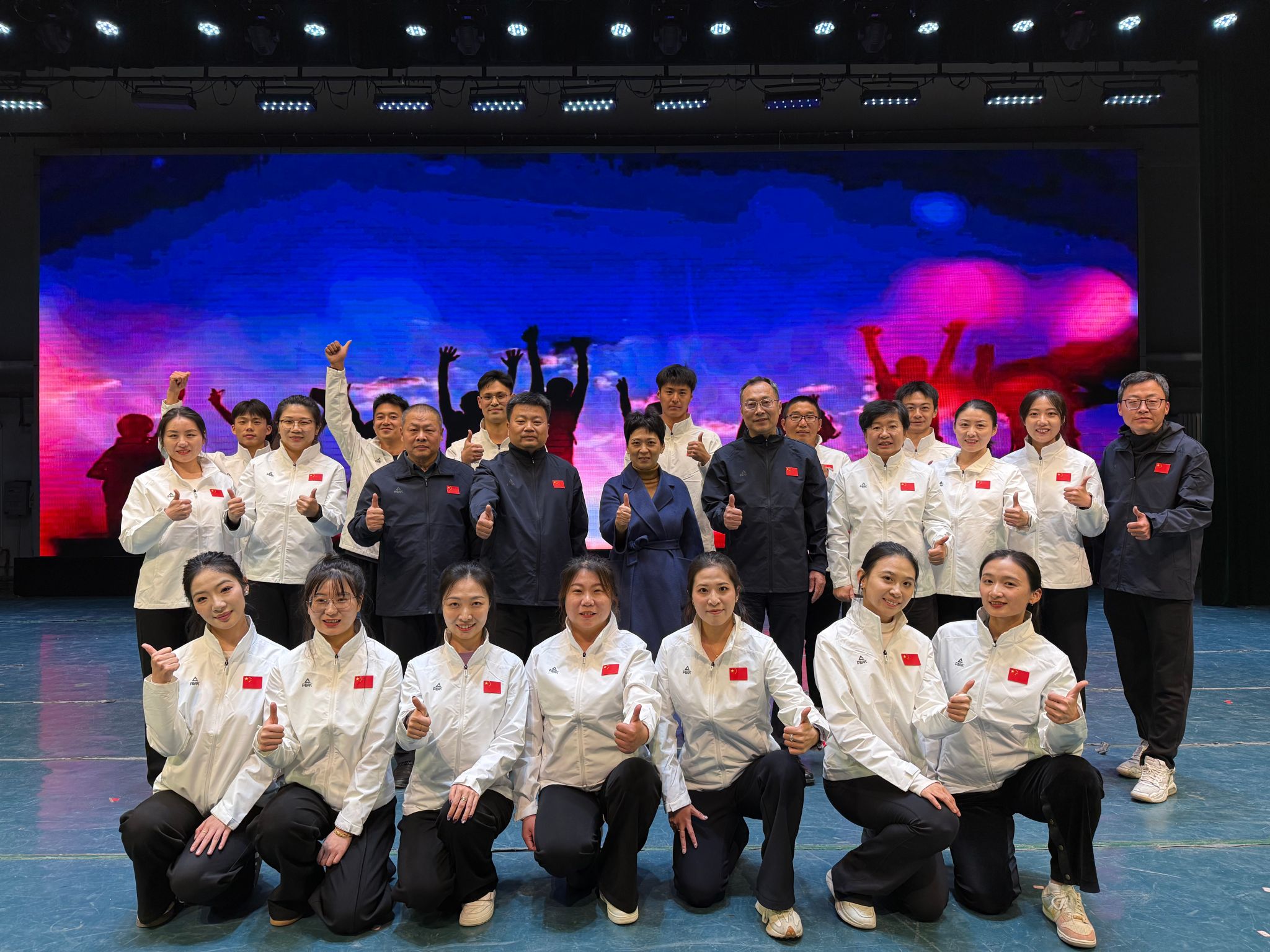 领导、青年教师组成的队伍在舞台上完美展现体育人的艺术风采,彰显了新时代教师多元化的艺术素养和团结奋进的精神风貌。