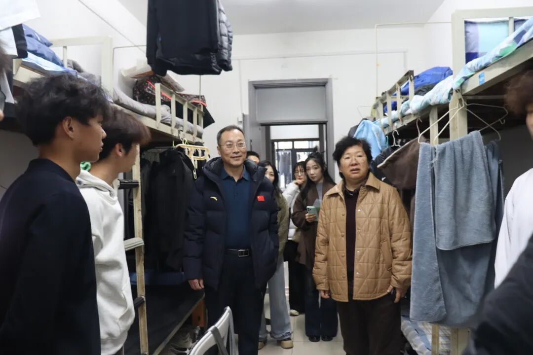 领导与学工人员重点查看了宿舍内务卫生、用电安全、消防安全、设施完好等情况。他们仔细检查了是否存在违规使用大功率电器、私拉乱接电线、存放易燃易爆物品等安全隐患;查看了阳台、卫生间等区域的卫生状况;排查了门窗、床铺、桌椅等公共设施的完好性;并亲切询问了同学们近期的学习、生活情况,听取大家对公寓管理的意见和建议。亓圣华强调,学生公寓是学生生活学习的重要场所,安全卫生状况直接关系到每一位同学的身心健康与生命财产安全,必须常抓不懈、防微杜渐。日常做好定期检查,务必认真细致,既要排查显性隐患,也要关注日常管理细节,同时要做好对学生的现场安全教育与引导。