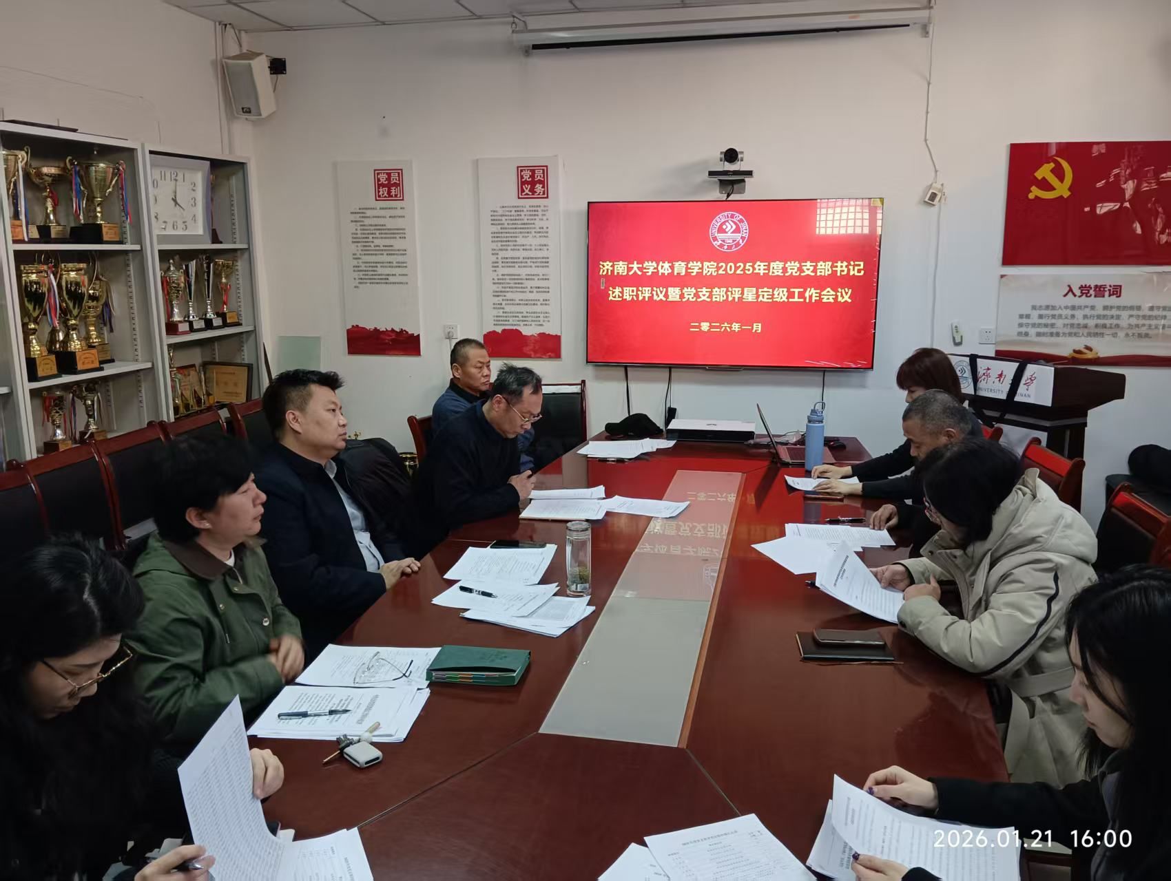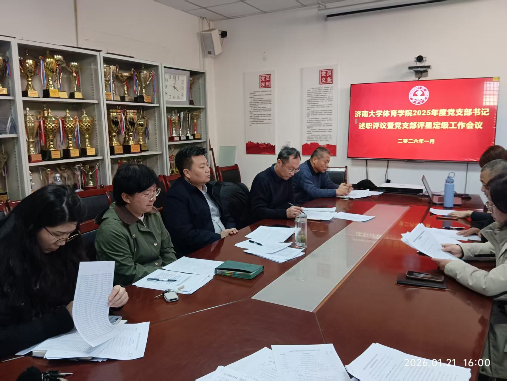 会上,各位党支部书记紧扣履行全面从严治党主体责任和抓基层党建工作两个方面依次进行述职。述职过程中,大家系统梳理了在带头履行全面从严治党主体责任和抓基层党建工作方面的具体举措,同时坚持问题导向,深入剖析问题产生的根源,并立足支部实际与体育学科特色,明确了下阶段的工作思路、整改措施与攻坚方向,展现出扎实的履职能力与务实的工作作风。