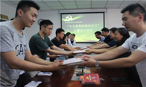 领导和老师为16名学生党员赠送了“政治生日”贺卡和学习书籍,党员同志们集体宣誓,重温入党誓词,发表生日感言,总结个人大学四年的成长历程,找差距,定方向。