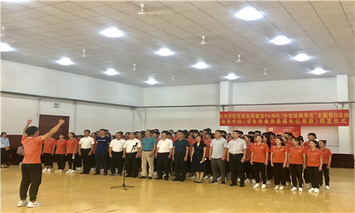 学生合唱团演唱了《歌唱祖国》经典爱国歌曲,精彩演唱引发了现场观众们的深情合唱;最后全体师生党员合唱《没有共产党就没有新中国》,将主题党日活动推向了新高潮。