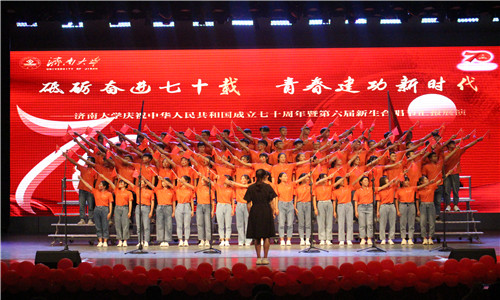 的参赛同学做了充分的准备,以积极饱满的态度投入到本次大合唱比赛的中。体院学子着整齐统一的跑道红院服,以独特的朗诵方式为接下来的合唱作序曲。在自选曲目中,他们采用分唱、合唱多种形式来演绎中华民族伟大复兴的精彩历程,他们精神饱满,以高昂的热情、嘹亮的嗓音唱出了对祖国的的热爱,对济大未来生活的憧憬,赢得了评委及现场观众的热烈掌声。最终,他们获得了此次合唱比赛三等奖的成绩。