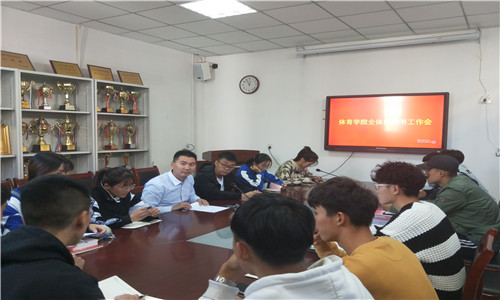 会议伊始,李谦老师从团委日常工作、团务活动两个方面进行工作指导。团委日常工作分为思想引领和团组织建设。思想引领体现在中华人民共和国成立七十周年之际,发扬五四精神,树立习近平“建功新时代”研习班思想。团组织建设工作分为四点:第一,配合青马班,推荐优秀学员;第二,发展团员,团员注册,团费缴纳,以及团关系转接;第三,推选优秀团干;第四,成立特色团支部。团务活动方面李谦老师强调,团支部活动参与第二课堂成绩单,搞好志愿服务活动、校园文化活动,把握好意识形态,积极参与体育文化艺术节,做好宣传以“学习强国”、“青年大学习”为主题的正能量思想,保证每月进行一次主题团日活动。