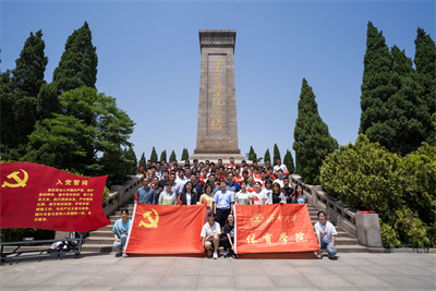 党委书记杨杰带领同志们在革命烈士纪念碑前重温入党誓词,并带领大家合唱《没有共产党就没有新中国》,在坚定的誓言和嘹亮的歌声中体悟初心使命。杨书记用“党史如明灯,照亮前行之路;党史如号角,激发前进的动力;党史如清泉,洗涤我们的心灵”三句饱含深情的话语与大家共勉,并强调学好党史,才能不忘初心,不改初衷。