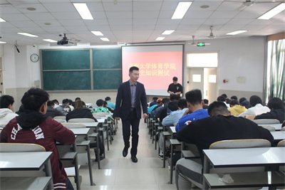 学生党支部于11月26日在第十一教学楼3段401教室开展党史知识测试,学生党支部书记李谦监考。