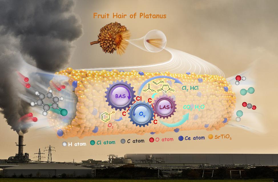 化学工程系教师孙钰琨、博士生徐帅、博士研究生导师白波教授与西安交通大学何炽教授联合在环境领域权威期刊《Environmental Science & Technology》(《环境科学与技术》,影响因子:9.03)上以封面论文(图1)形式发表题为“Biotemplate Fabrication of Hollow Tubular CexSr1−xTiO3 with Regulable Surface Acidity and Oxygen Mobility for Efficient Destruction of Chlorobenzene: Intrinsic Synergy Effect and Reaction Mechanism”的研究论文,孙钰琨为论文第一作者,长安大学为第一署名单位(文章链接://doi.org/10.1021/acs.est.2c00270)。该文提出一种以废治废的创新方法,深入剖析活性氧与多种酸位点的协同作用,是催化降解工业含氯可挥发性有机化合物的又一重大进展。
