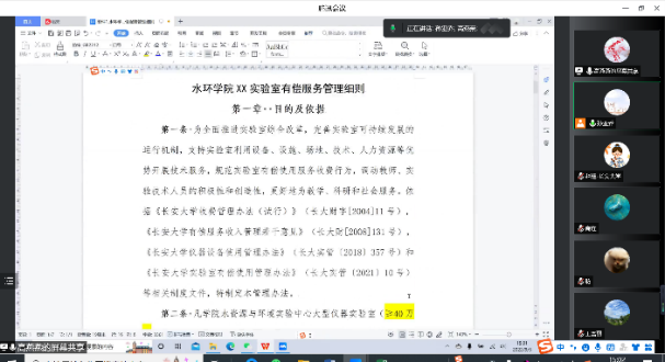 9月6日下午,水环实验中心在线上开展了实验室有偿使用管理办法研讨,实验中心所有教师参加会议,会议由实验中心主任孙亚乔主持。