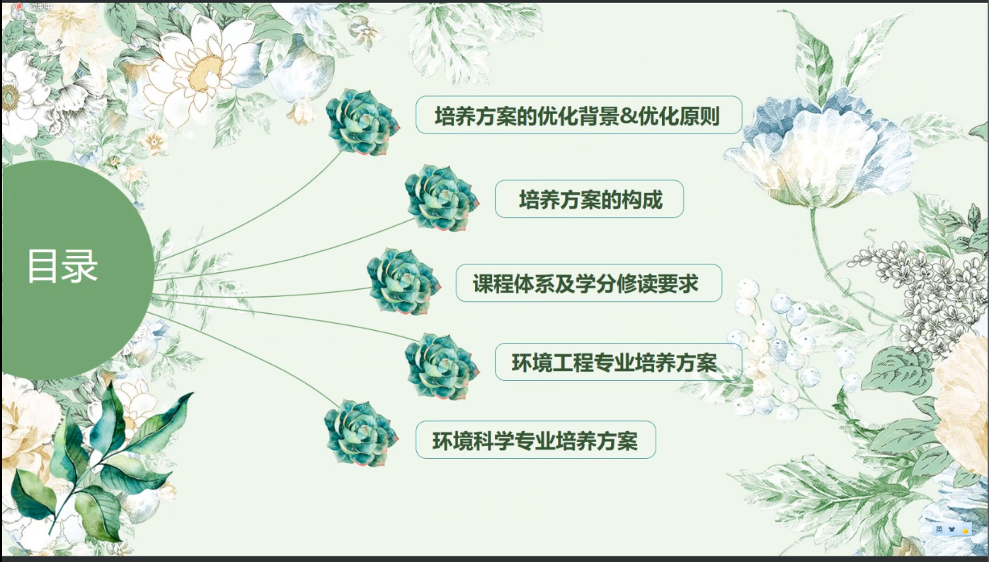 副院长段磊首先言,他各位专家百忙之中参加本次评审会表示衷心感谢,阐述了培养方案对于培养专业人才的重要性。系副主任杨文娟从多个方面分别对环境工程和环境科学专业的培养方案进行了详细的汇报,充分表述了各专业的培养目标、完全学分制改革的课程体系和学分要求以及培养方案制定的思路和具体内容。