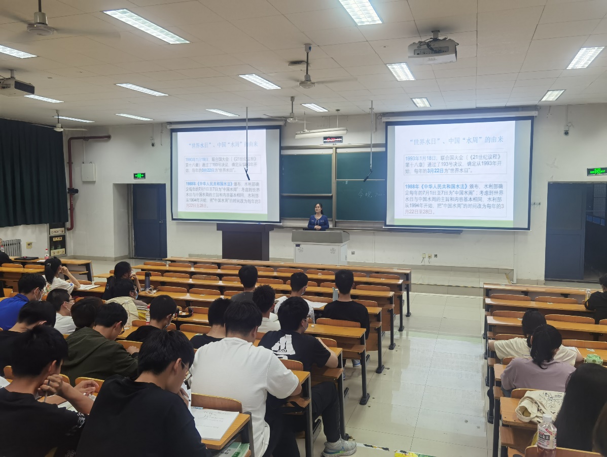 大一学生对水利类专业的认识、认同,帮助同学们明确自身未来规划和奋斗方向。地下水科学与工程系于2022年4月25日晚在长安大学渭水校区WM3201组织开展了题为“从2022年‘世界水日’和‘中国水周’谈起”的主题报告。此次活动特邀地下水科学与工程系专业责任教授乔晓英为同学们主讲,水利工程专业本科生班主任王宁、陆彦玮,2021级水利类专业全体本科生参加活动,活动由系主任黄文峰主持。