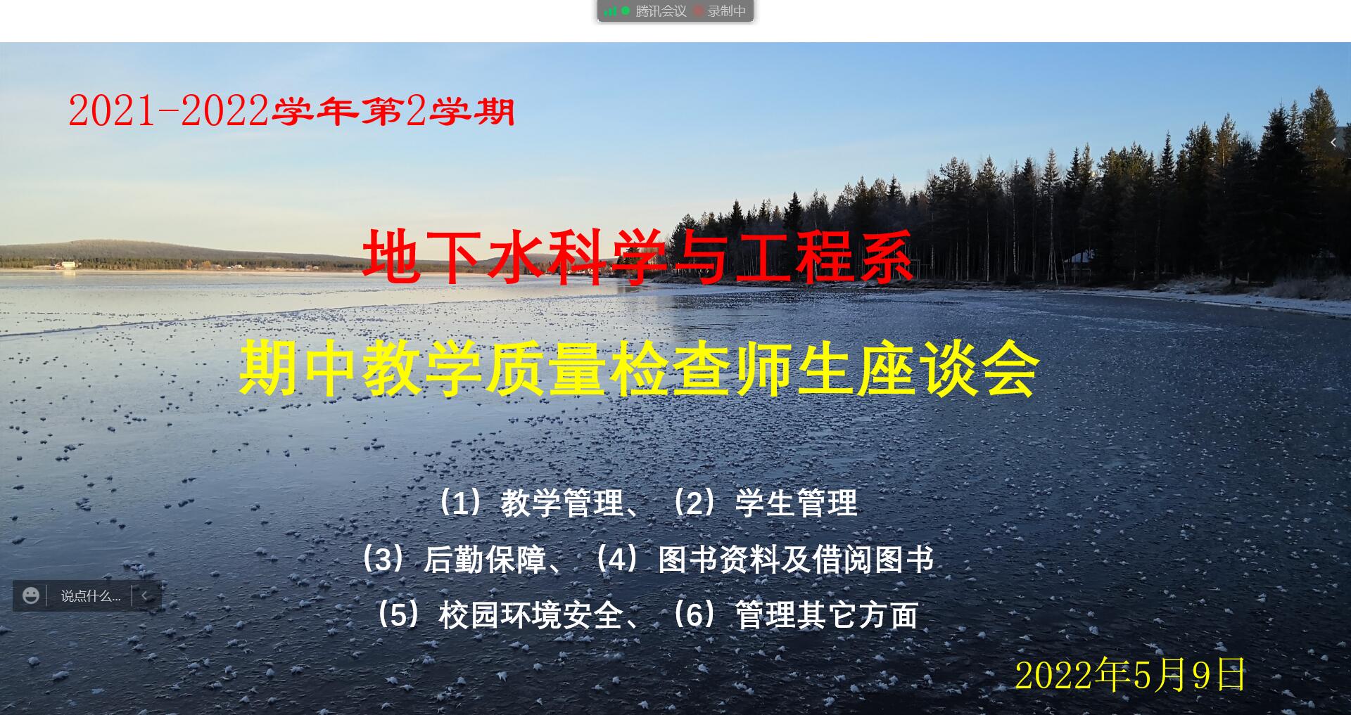 、系室在教育教学、管理服务等方面的意见和建议,及时发现和处理教学各环节存在的问题,根据《长安大学期中教学质量检查实施办法》(长大教〔2012〕296号)文件精神,地下水科学与工程系于5月9日下午,利用腾讯会议召开了2021-2022学年第二学期期中教学质量检查师生座谈会,巴黎人赌场