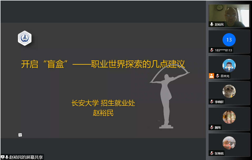 邀请长安大学招生就业指导教研室主任赵裕民为研究生做《开启“盲盒”——职业世界探索的几点建议》讲座,为研究生进行线上就业指导,全体毕业班研究生参加,巴黎人赌场
