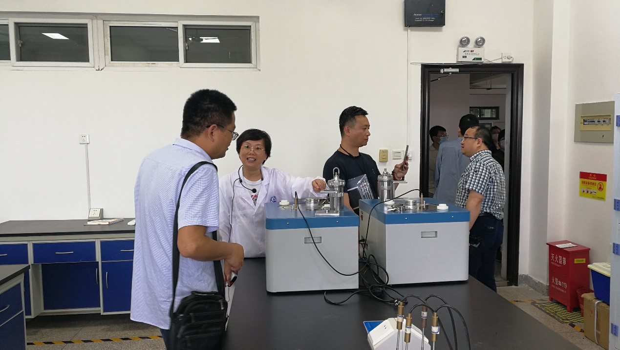 化工实验中心调研交流实验室建设与管理工作。实验室建设与管理处副处长张雷和化工实验中心主任陈志红陪同调研。