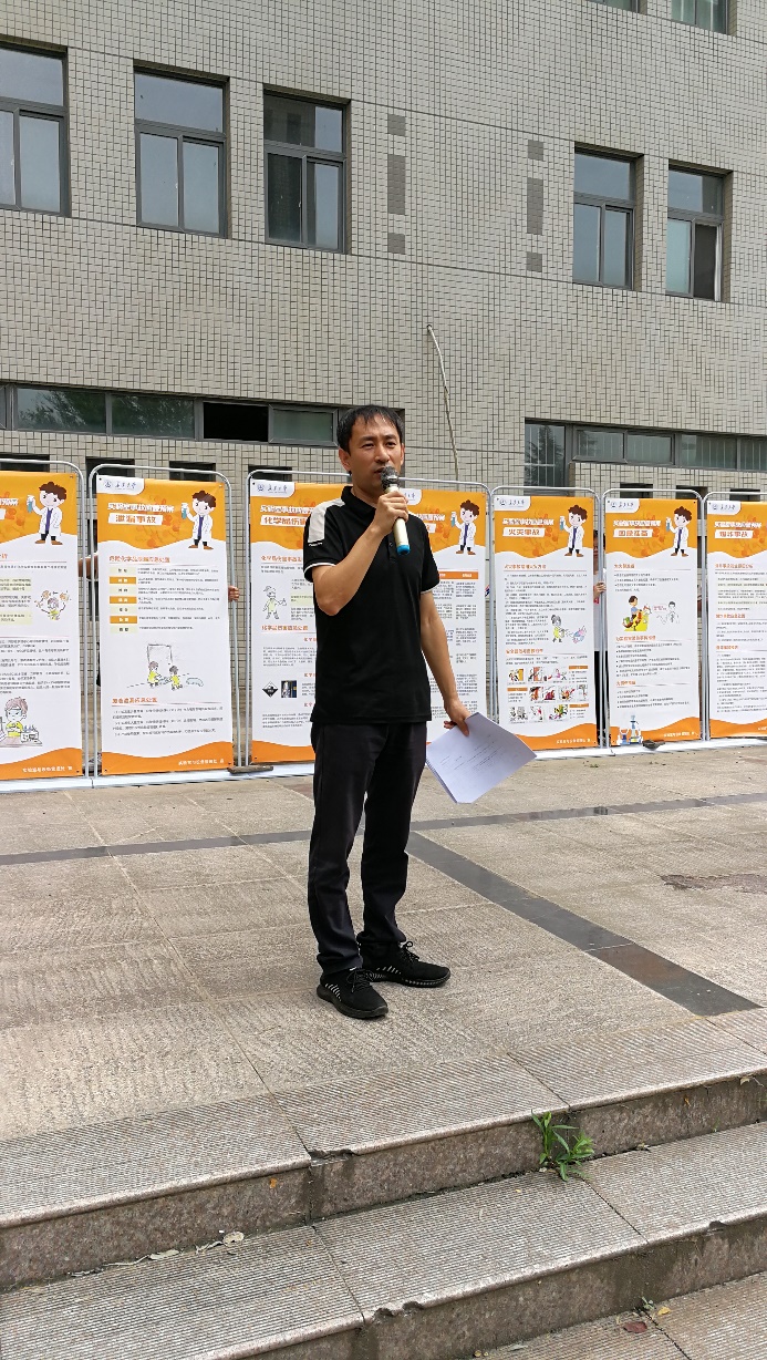 陈志红介绍了本次演练的背景和主要目的。西安安备思软件有限公司总经理刘涛介绍了演练流程。现场总指挥李培月宣布安全演练开始。参与演练的师生认真形象的展示了废液倾洒事故发生人员受伤和环境污染后,统一指挥、医疗救助、现场抢险、紧急疏散和善后处理等环节的应急过程,充分体现了长安大学实验室安全事故应急管理处置能力。西安安备思软件有限公司总经理刘涛与观摩师生进行安全知识互动,增强了观摩师生的安全意识。