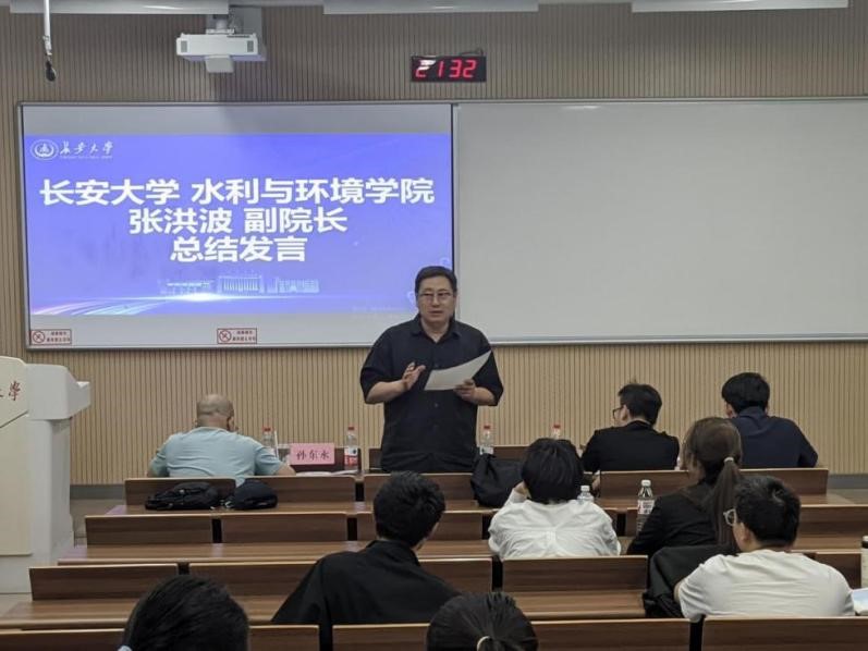 副院长张洪波老师做了总结发言,他表示非常欣喜看到同学们的作品选题精准,需求贴合实际,智慧化与数字化应用亮点十足,参赛作品难度设定契合能力,但作品的严谨性仍需加强。希望获奖队伍能再接再厉,认真打磨作品,争取在国赛里取得更好的成绩,也希望同学们在比赛过程中要敢于思考,培养勇于攻关困难的勇气,通过水创比赛不断提升自我。