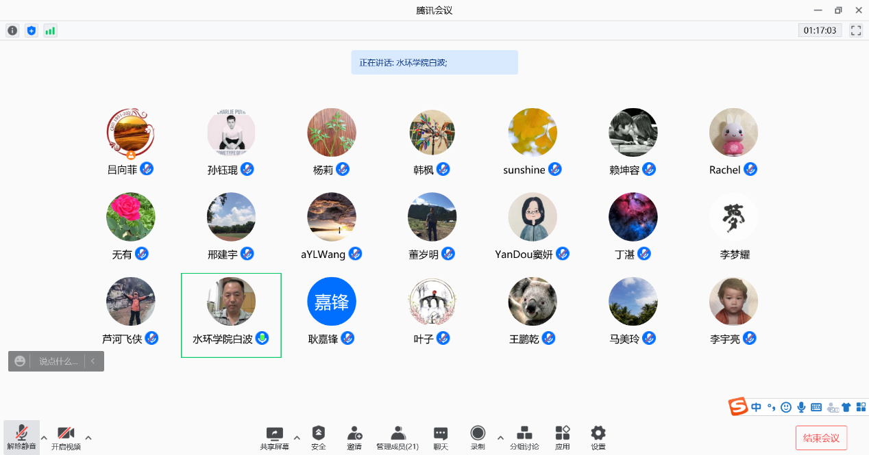 1月4日晚20:00化工支部邀请三位参加一线抗疫工作的老师:白波院长、杨建军老师和孙钰琨老师,在云端会议为全体支部党员进行了他们疫情工作的经验和感想,会议由支部吕向菲主持。