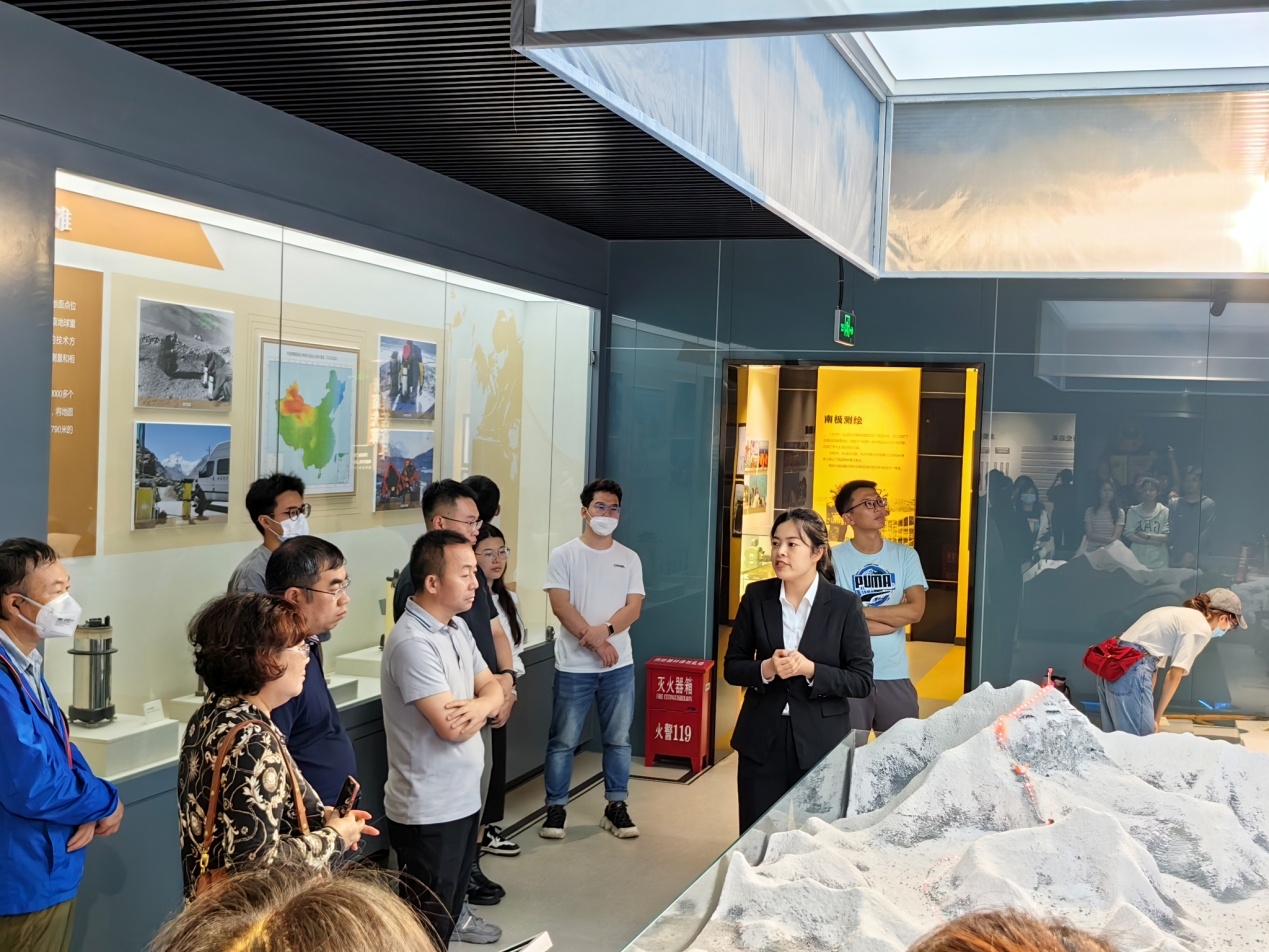 在讲解员的带领下,师生们全文学习了习近平总书记给国测一大队老队员老党员的回信,参观了国测一大队精神展室内“为国测绘 矢志不渝”“甘于奉献 薪火相传”等七个板块的内容。通过参观,了解了不同历史时期,国测一大队为国家国防安全、经济社会发展、科学研究等做出的卓越贡献,了解了国测一大队自1954年建队以来,两下南极、七测珠峰,百余次深入西藏无人区、内蒙古戈壁荒原、新疆沙漠腹地,徒步行程超过6000万千米,被评为“感动中国2020年度人物”的光辉历程。