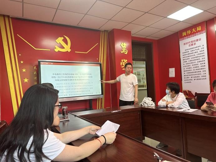 最后,陈宇云书记带领大家学习了《习近平在中共中央政治局第五次集体学习时强调 加快建设教育强国 为中华民族伟大复兴提供有力支撑》、《习近平在听取陕西省委和省政府工作汇报时强调 着眼全国大局 发挥自身优势 明确主攻方向 奋力谱写中国式现代化建设的陕西篇章》、《中央教育工作领导小组秘书组、中共教育部党组印发<关于学习宣传贯彻习近平总书记在中央政治局第五次集体学习时重要讲话精神的通知>》等材料。