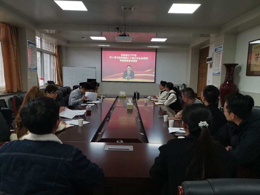 党委组织科级及以下干部、党员在三楼会议室集中开展党的二十届三中全会精神系列学习研讨。全体科级干部、科员、专职辅导员参加培训。