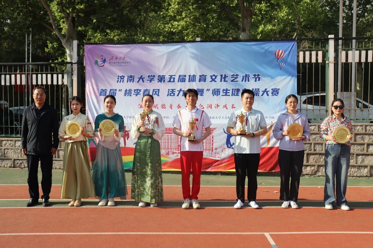 凭借“青春魅力”“大众五级”两套操展现了健美操的专业风采;教职工组中,颁发了优秀组织奖、最佳编排奖、最佳服饰奖和最佳团队奖。此外,还为比赛中表现优异的师生颁发了最佳表演奖,最具潜力新人奖,明星队员奖,个人风采奖。
