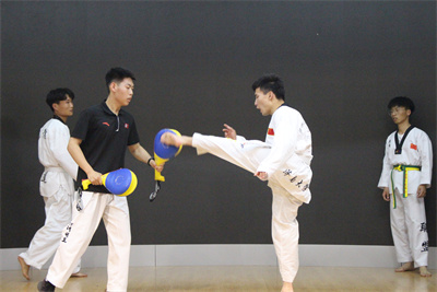 幼儿园的老师们和孩子们热情的迎接了志愿者们的到来,孩子们还为志愿者们送上了一支阳光活泼的舞蹈表示欢迎。志愿者们与孩子们在幼儿园内交流、嬉戏,并为他们呈现了一场精彩的跆拳道表演。跆拳道是一门格斗术,以其腾空、旋踢脚法而闻名,具有较高的防身自卫及强壮体魄的实用价值,在动感音乐的伴奏下,志愿者们的一招一式都那么舒展豪放、洒脱自如,充分展示了跆拳道无穷的魅力和深刻的内涵。志愿者们每一个高难度动作都能引得现场孩子的欢呼和老师的称赞。表演结束后,志愿者们亲切的与孩子们进行互动,并手把手的教给他们一些简单的跆拳道动作和套路。跆拳道一方面可以培养正义感,是强调纪律、高超的技术和坚强精神教育的特有武道,另一方面是简单易学,在危险的情况下,孩子们可以运用跆拳道的动作进行正当的防身。