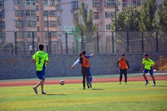 2014级男足和女足代表队以及2015级男足和女足代表队。比赛前队员们积极做好热身准备,没有丝毫的松懈。一声哨响,在双方拉拉队的加油声中,比赛很快就进入了状态。绿茵场上,双方进攻此起彼伏,14级男足代表队在一阵阵猛烈攻势下首进一球。15级男足代表队虽然落后,但毫不灰心,经过短暂的调整后,展开了反攻。当然女足也毫不示弱,女将们英姿飒爽,积极配合,来回传球,将比赛推向高潮。比赛进行的如火如荼,队员激情四射,观众亦情绪高涨。经过激烈的角逐,队员们在赛场上挥汗如雨,激情上演着精妙的配合和精彩的进球。最终,足球友谊赛在啦啦队此起彼伏的助喊声中圆满结束了。