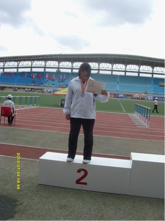 十、化敏同学获得女子乙组铅球和铁饼两枚银牌,教练员单红军老师(外聘)