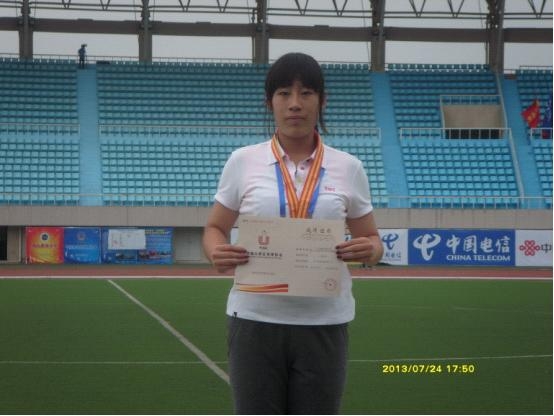 十五、孙艳玲同学获得女子乙组标枪第四名、铅球第六名,教练员单红军老师