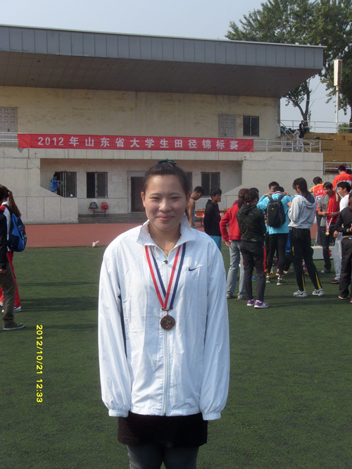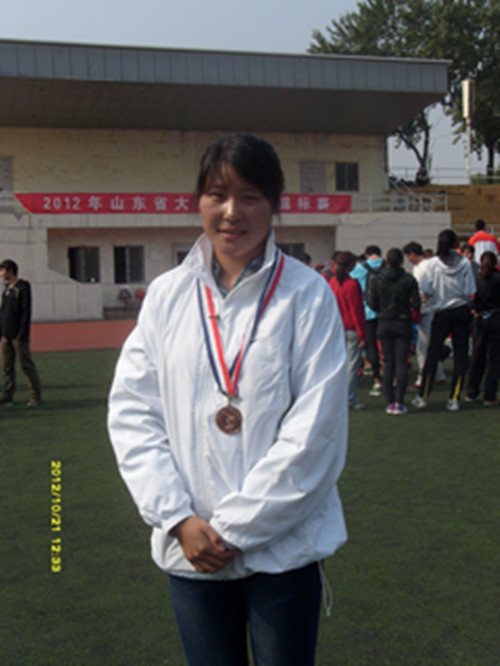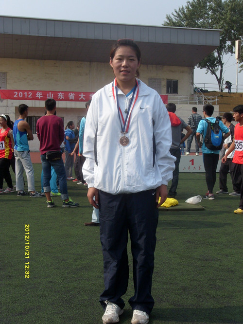 9.孙艳玲同学,获得女子甲组标枪铜牌,教练员单老师红军(外聘)