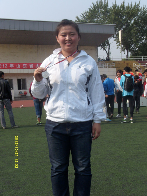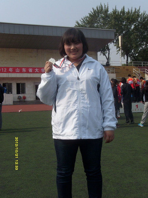 3.化敏同学,获得女子甲组铁饼银牌、铅球第六名,教练员单红军老师(外聘)